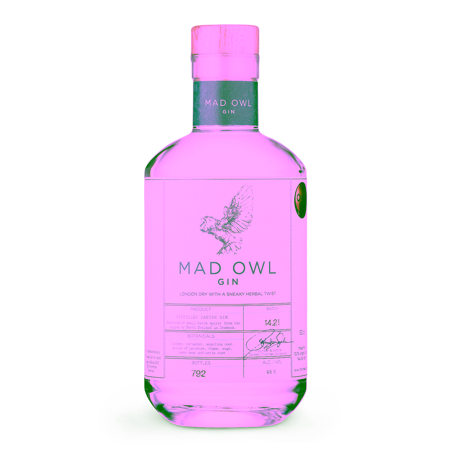 Mad Owl Gin er en prisvindende dansk håndværksgin, der repræsenterer mødet mellem traditionel London Dry destillationskunst og moderne nordisk smagsekspertise fra Thornæs Destilleri.